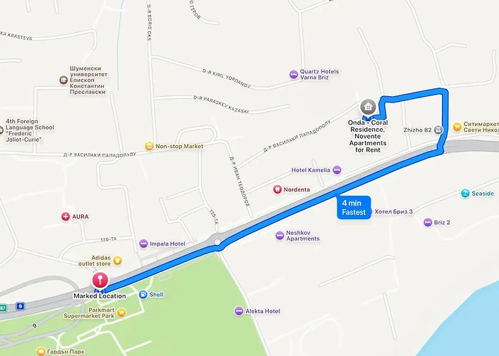 Delphinarium se trouve à environ 2 km de l'appartement, tandis que le Château d'Euxinograd est à 2 km. Il est situé à Varna, à 4 km du centre-ville. Le Jardin maritime se trouve à 2 km.